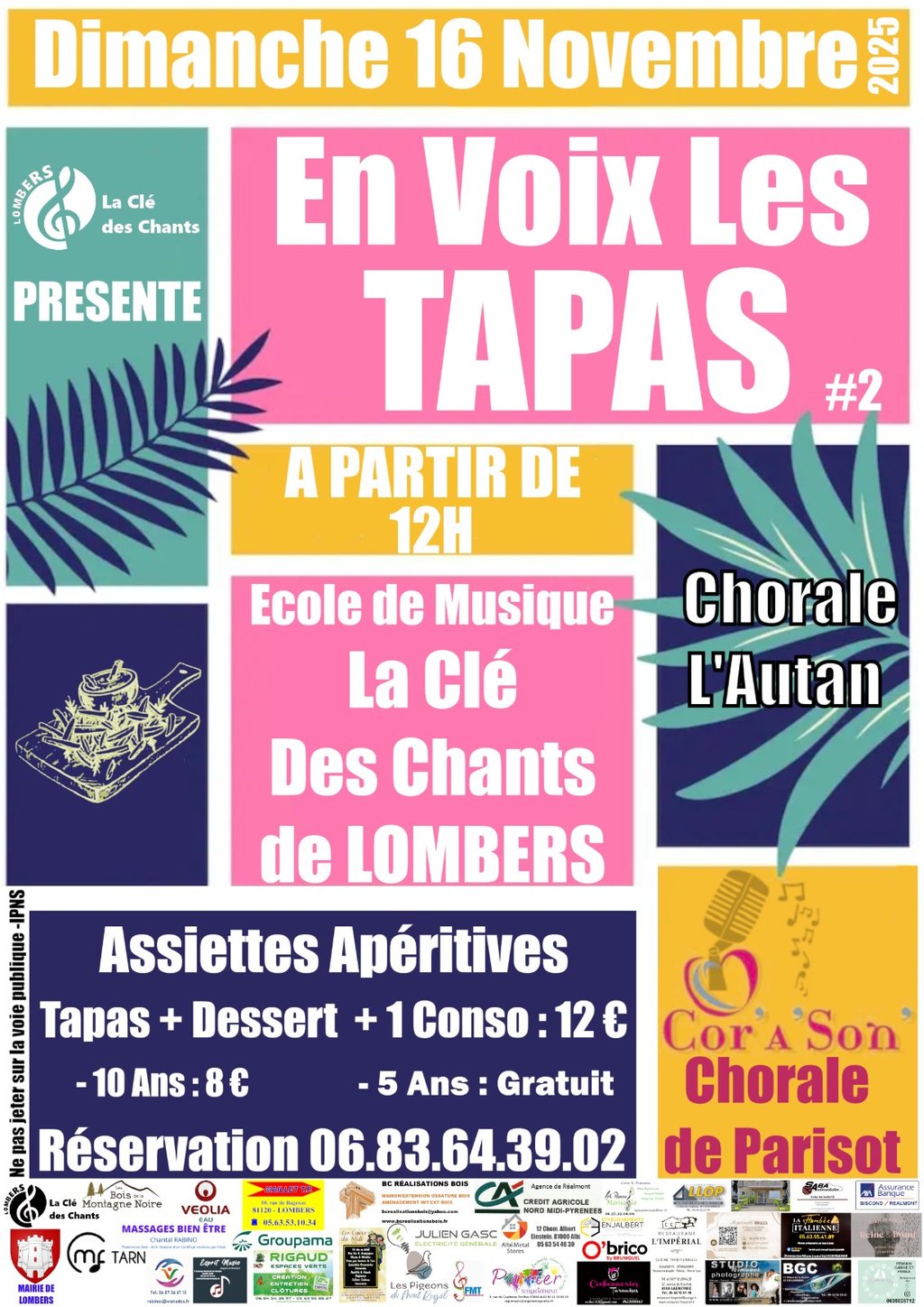 La Clé des Chants de Lombers organise un Concert & Apéro Tapas "En voix les Tapas #2", le :